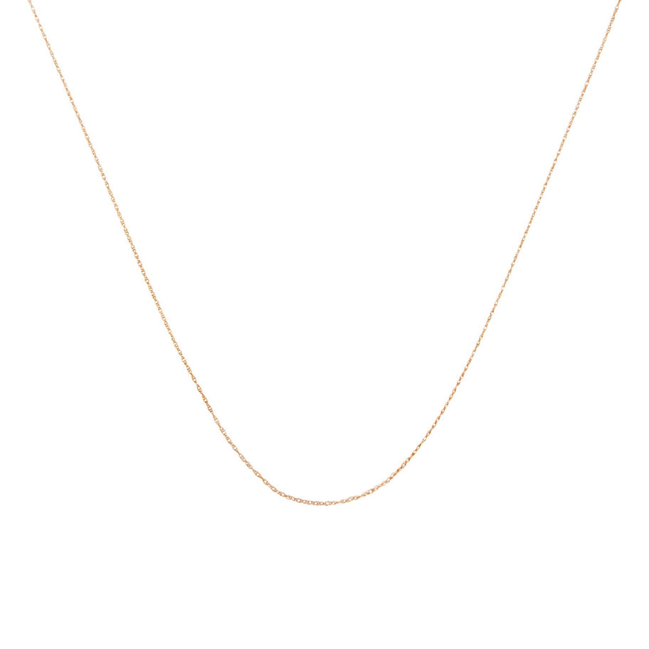 Presenting a feminine classic: a simple and dainty 10K yellow gold rope chain, available in your choice of 16, 18 or 20 inches. This thin, 1/2-millimeter wide chain fastens securely with a standard spring ring clasp. It can replace most chains and is perfect paired with small to medium size pendants. Please keep in mind this chain is slender and delicate, best used for smaller/lighter pendants. Not recommended for heavy pendants.